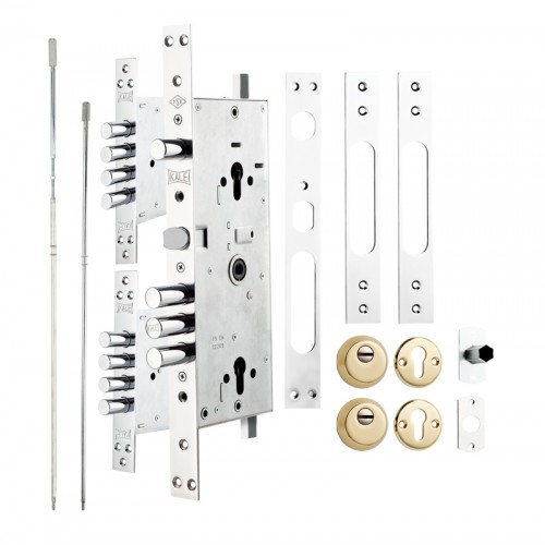 KALE KİLİT - Kale 256 Multisistem Merkezi Çelik Kapı Kilidi - KROM ( BM +GNC Nikel Silindirli ) Rozetsiz