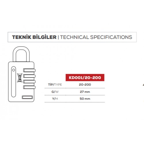 KALE ŞİFRELİ ASMA KİLİT KIRMIZI 4 BASAMAKLI KD001/20-800