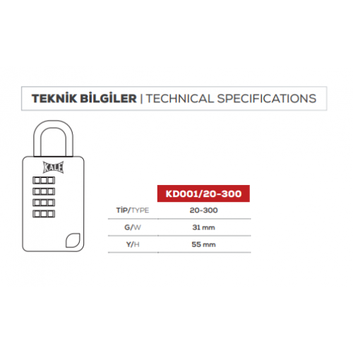 KALE ŞİFRELİ ASMA KİLİT 4 BASAMAKLI KD001/20-400